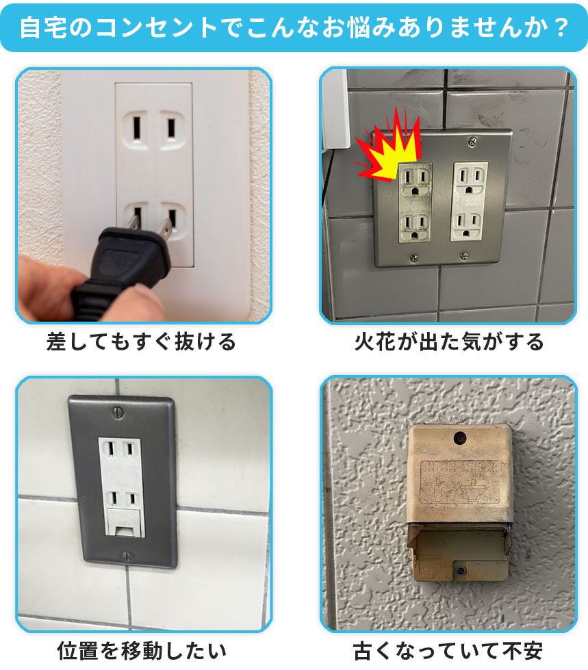 メッセージ:最近、「差してもすぐ抜ける」「グラグラする」「なんとなく熱を持っている気がする」といったコンセントのご相談が増えています。